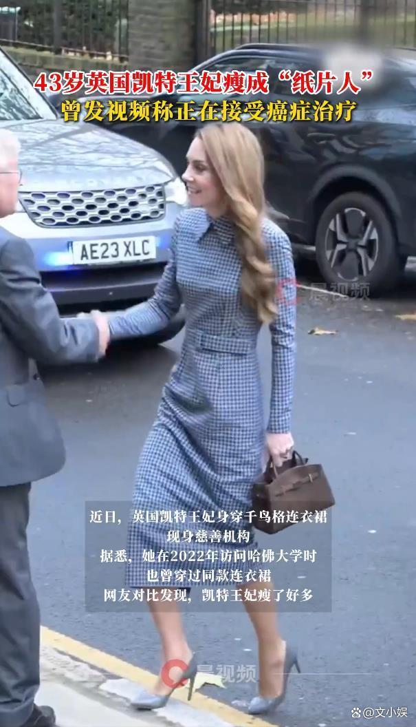 凯特王妃暴瘦现身 抗癌斗争引关注。近日,凯特王妃一身千鸟格连衣裙现身伦敦儿童心理健康机构,引发全球关注。这条裙子与2022年12月访问哈佛大学时穿的是同一条,只是这次她换上了宽腰带。新旧照片对比明显,网友惊呼她瘦了很多。
