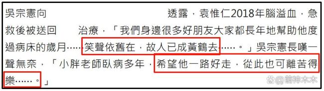 吴宗宪对袁惟仁的离世表示不舍。他提到原本筹备的专辑由袁惟仁担当制作人,但没想到歌曲还没发行,袁惟仁就已离世。他认为小胖老师的离开也是一种解脱,从此脱离了病痛。