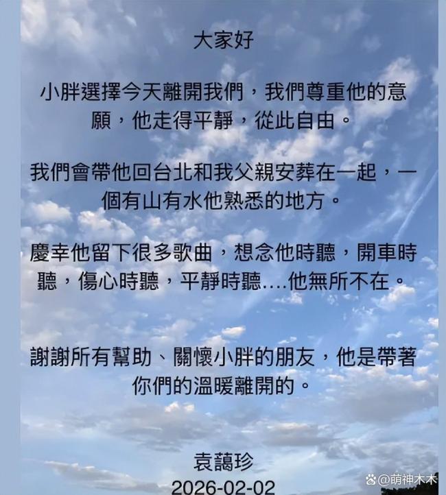 2月2日,57岁的音乐制作人袁惟仁在家中病逝。家属表示将带他回台北与父亲合葬在一起。消息传出后,众多明星纷纷表达哀悼之情。