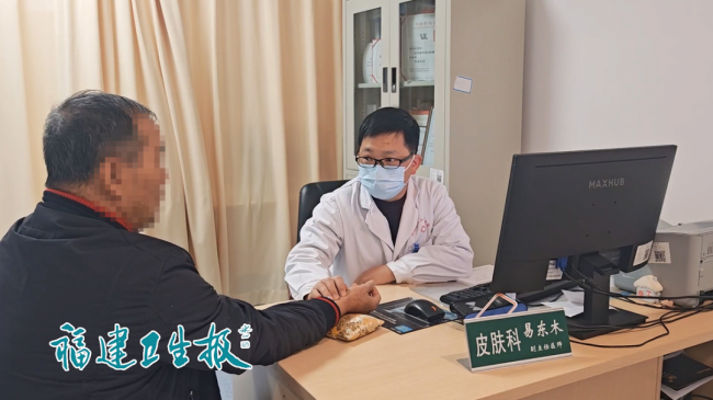 福建省第二人民医院皮肤科主任易东木对陈大爷印象深刻,描述他的小腿皮肤又厚又粗糙,像干裂的树皮,颜色褐红斑驳,脱屑明显,局部摸上去发烫,是典型的干燥性湿疹继发丹毒的表现。入冬以来,像陈大爷这样的干燥性湿疹患者明显增多,最近一个月,该科室接诊了大约一两百例,不少都是拖到感染后才来治疗,增加了治疗难度。