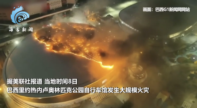 - 里约奥运会自行车馆发生大规模火灾 场馆一半屋顶被烧毁
