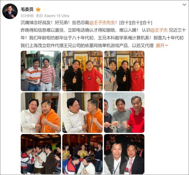 圈内人士很快证实了这一消息,好友“毛委员”发文悼念王子杰。他表示得知消息后难以置信,立即通过电话确认了噩耗。两人是近30年的好友,原本还计划月初相聚,没想到王子杰走得如此匆忙。