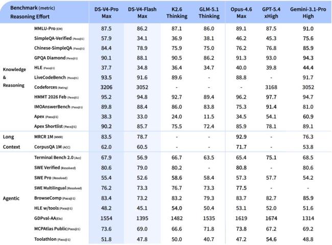 DeepSeek-V4-Pro在性能上比肩顶级闭源模型,其Agent能力显著增强。在Agentic Coding评测中,V4-Pro达到了当前开源模型的最佳水平,并且在其他Agent相关评测中同样表现优异。公司内部员工使用反馈显示,V4-Pro的使用体验优于Sonnet 4.5,交付质量接近Opus 4.6非思考模式,但仍与Opus 4.6思考模式存在一定差距。此外,V4-Pro在世界知识测评中大幅领先其他开源模型,仅稍逊于顶尖闭源模型Gemini-Pro-3.1。在数学、STEM、竞赛型代码的测评中,V4-Pro超越了所有已公开评测的开源模型,成绩比肩世界顶级闭源模型。