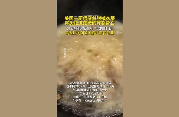 - 美一厨师脱光扎进炸锅中身亡 悲剧引发关注