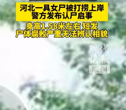 - 河北一具女尸被打捞上岸,警方发布认尸启事