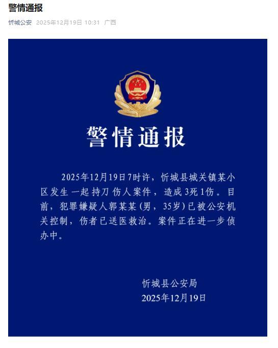 - 警方通报男子持刀伤人致3死1伤 案件正在侦办中