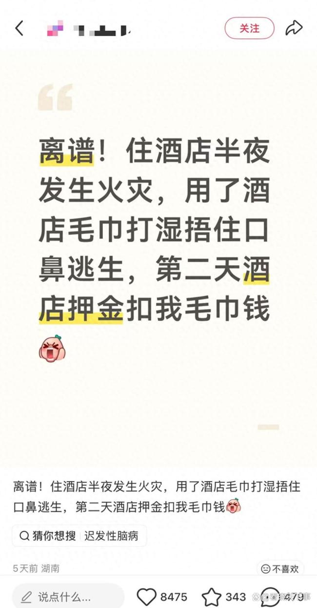 - 女子遇起火拿毛巾捂口鼻 退房被收钱 酒店冷漠收费引争议