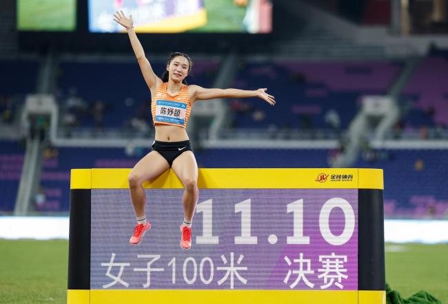 11秒10!16岁的陈妤颉在第十五届全国运动会女子100米决赛中夺冠,刷新了亚洲青年纪录和由自己保持的亚洲少年最好成绩。比赛当晚9点多,梳着双马尾的陈妤颉站上百米起跑线,枪响后她不断提速,在前半程与广西名将韦永丽不相上下,后半程迅速扩大优势,最终毫无悬念夺得冠军,领先第二个冲线的韦永丽达0.27秒。