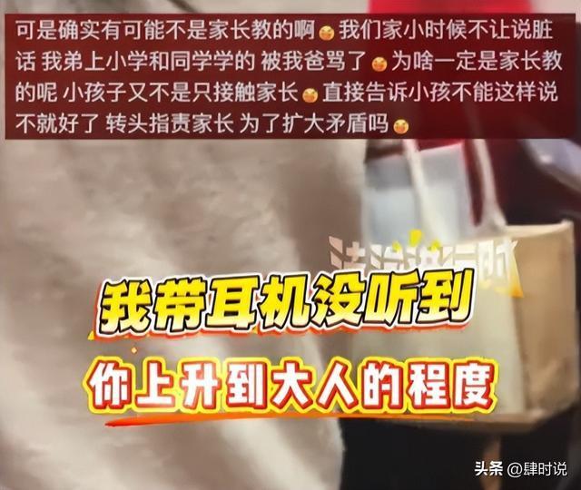 女子质问孩子是从哪里学来的这种说法,是否是大人教的。孩子母亲解释自己已经在教育孩子,但女子表示没听见。随后,女子又对孩子说:“人也是很臭的,知道吗小朋友?”这番话让孩子的母亲更加不满,认为对方说话难听且无理取闹。