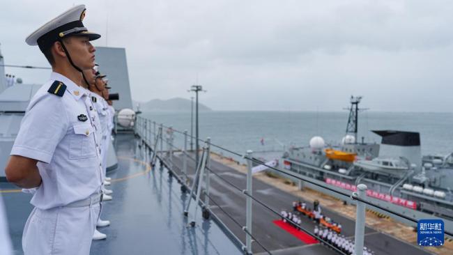 25日上午,越方在金兰港码头举行了欢送仪式,中国驻越南大使馆工作人员、当地华侨华人代表以及越南海军官兵到码头送行。按照远海实习计划安排,两名来自缅甸的军官登舰随编队出航同训。
