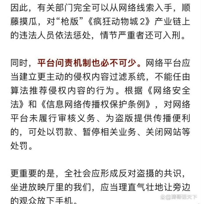 《疯狂动物城2》上映6天票房突破20亿,凭借治愈剧情和精良制作成为现象级爆款。然而,银幕外的另一番“疯狂”却让观众愤怒、业界揪心。黑暗的放映厅里,手机亮光此起彼伏,有人像“夜行动物”般悄悄举机拍摄。二手平台上,0.01元起售的“高清枪版”销量破千,社交媒体上,关键剧情片段随意传播。这种乱象不仅毁了观影体验,更在践踏创意产业的法治底线。