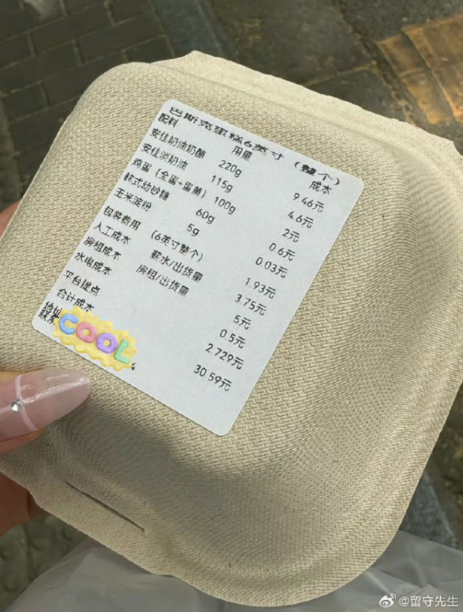 店主直接把小蛋糕的成本都写上了 网友:我终于知道为什么蛋糕很贵了