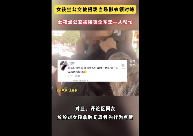 女孩回应坐公交被猥亵无一人帮忙:我不能沉默,我不能让他觉得女性好欺负。近日重庆,一位女孩在公交车上被变态猥亵两次,女孩忍无可忍,在拍视频记录下证据后,揪起对方衣领当场对峙,最后报警将猥亵者送进派出所。事后,女孩在社交平台上分享自己对这段经历的感受,和女孩在外遇到猥亵者该如何保护自己的经验。同时女孩也在文案中表示:最让我心寒的是,整个车厢,没有一个人站出来帮助我,但我不能沉默,我不能让他觉得女性好欺负。对此,评论区网友纷纷对女孩勇敢又理性的行为点赞。