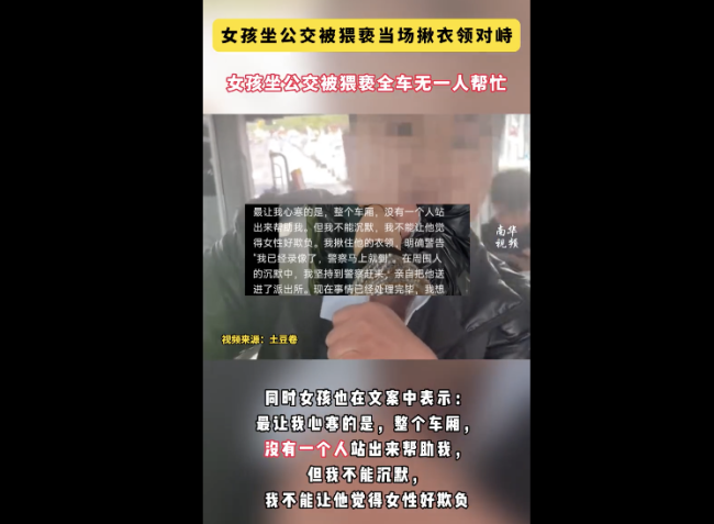 女孩回应坐公交被猥亵无一人帮忙:我不能沉默
