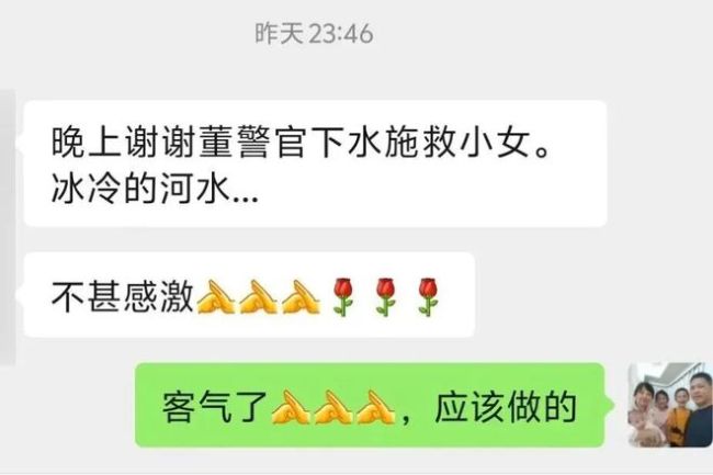 浑身湿透的董季东不忘叮嘱家属耐心开导,随后匆匆赶回派出所换装,继续值班。从接警到救回,仅用50分钟。当晚,江先生发来致谢消息:“冰冷的河水……不甚感激。”董季东回复:“客气了,应该的。”