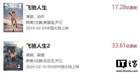《飞驰人生》是韩寒编剧导演的赛车喜剧电影系列。首部《飞驰人生》于 2019 年春节档上映,累计票房达 17.28 亿元;《飞驰人生 2》则在 2024 年春节档上映,累计票房为 33.61 亿元。