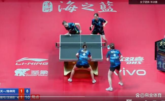 第二盘比赛是焦点战,由王曼昱对阵王艺迪。两人非常熟悉,在国际比赛和国内比赛中经常交手,王曼昱相对占据上风。比赛开始后,王曼昱开局5-1领先,打得游刃有余,从前三板到相持阶段都比较稳定,以11-6轻松拿下首局。第二局王曼昱继续掌控比赛节奏,以11-6再胜一局。第三局王曼昱开局3-0领先,但王艺迪连追3分并强势加力加质量,以11-5扳回一局。第四局王艺迪继续强势进攻,取得4-2领先,但王曼昱加快节奏和变化,以11-6锁定胜利,帮助队伍取得大比分2-0领先。