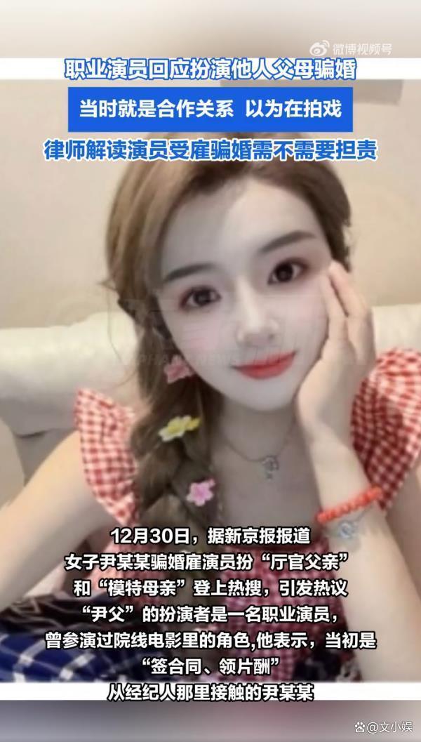 职业演员回应扮演他人父母骗婚 一句“不知情”能否免责?!近日,一则“女子雇演员扮父母骗婚”的新闻引起广泛关注,剧情之离奇让网友感叹现实比剧本更离谱。事件中的职业演员王天佑声称自己签合同、领片酬,以为是在拍戏,对骗局一无所知,现已退出演艺圈。