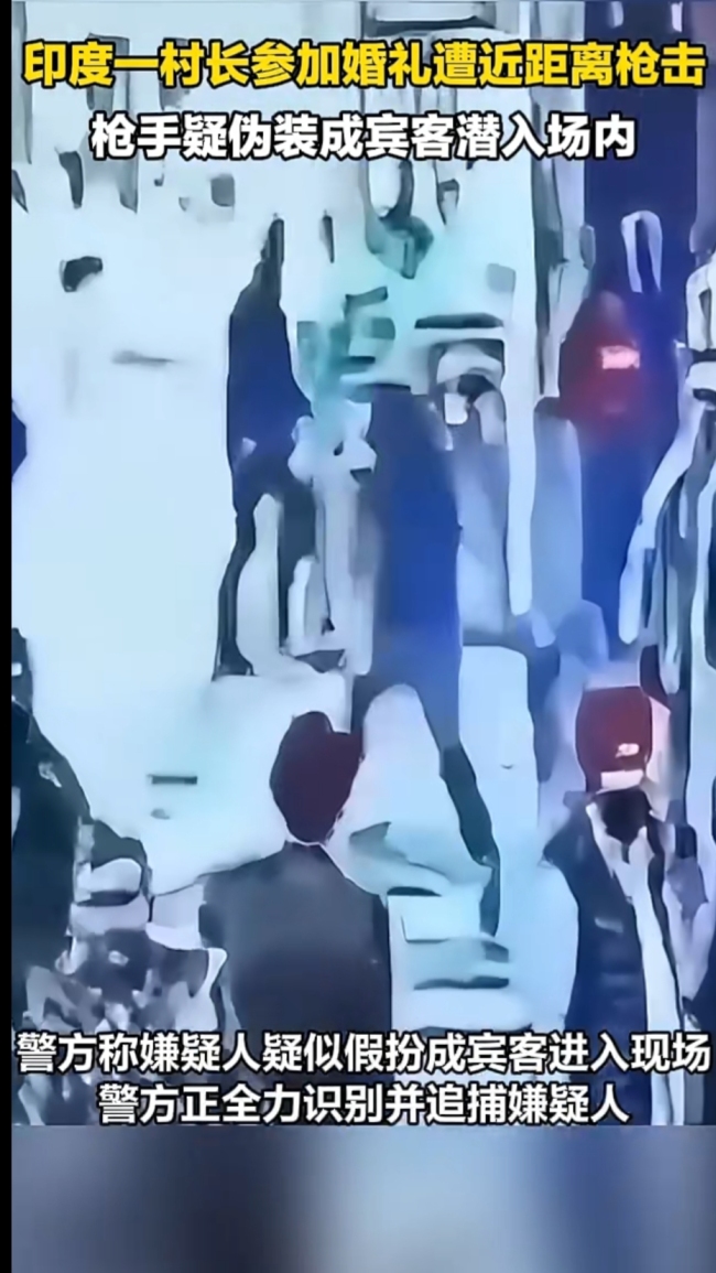 印度一村长参加婚礼时被近距离爆头 枪手假扮宾客行凶。1月4日,印度平民党一名领袖兼村长在参加婚礼时遭两名身份不明的男子枪击身亡。这两名男子身着便装混入人群中,突然掏出枪对着村长的后脑勺近距离开火,随后逃离现场。现场多名宾客因事发突然而满脸错愕。村长被紧急送往医院,但最终因伤势过重不幸身亡。据了解,他在遇害前曾受到威胁。警方怀疑嫌疑人假扮成宾客进入现场,目前正在全力识别并追捕嫌疑人。