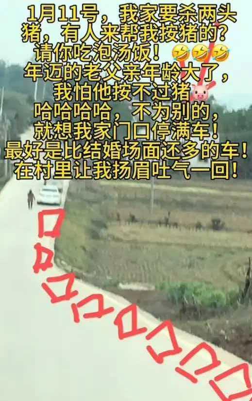 一句朴素的网络邀约,让重庆合川的一个平静村庄成为焦点。1月9日凌晨,网名“呆呆”的网友在短视频平台发出求助:“1月11号我家要杀两头猪。有人来帮我按猪吗?请你吃刨汤饭。老父亲年纪大了,怕他按不住猪。”这番半玩笑半认真的邀约,配上希望门口停满车的愿望,激起了远超想象的涟漪。短短两天内,获得了11万点赞、3.7万条评论,3000人报名,六个微信群爆满——一场乡村“杀猪饭”变成了全网瞩目的现象级事件。