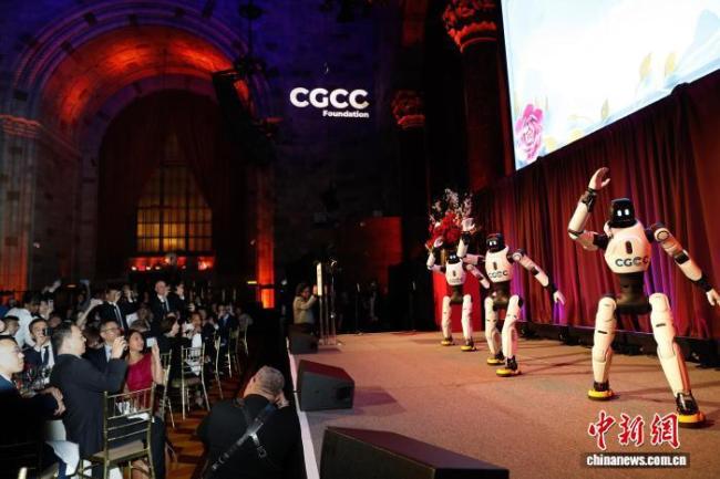 晚宴期间,来自中国的智元机器人表演了充满动感的舞蹈,为活动增添了一份科技与艺术结合的独特氛围。