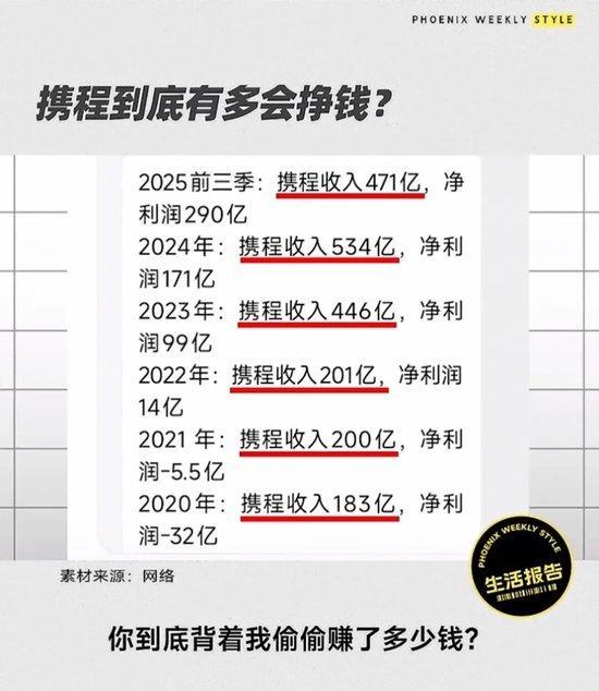 对于许多大公司来说,65亿是一笔巨大的金额,相当于几年的净利润。然而,对携程而言,这似乎并不是一个难以承受的数字。公开数据显示,2025年前三季,携程收入达到471亿元,净利润为290亿,预计全年总利润将超过350亿。其81%的毛利和72%的市占率,三个季度内营收超400亿、利润近300亿,展现出惊人的盈利能力。