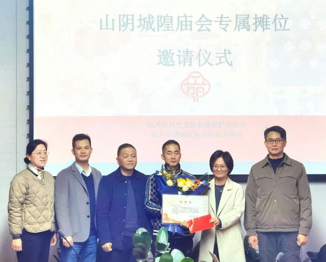 昨日上午,绍兴市名城办和府山街道联合向台州摊主陈清军颁发了“山阴城隍庙会专属摊位邀请函”,承诺今后每年的庙会都将为他设立专属摊位。1月5日深夜,陈清军在参加第三届山阴城隍庙会时,不顾危险跳入冰冷的风则江中,与民警合力救起了一名落水女子。这一英勇行为引起了社会各界的关注。