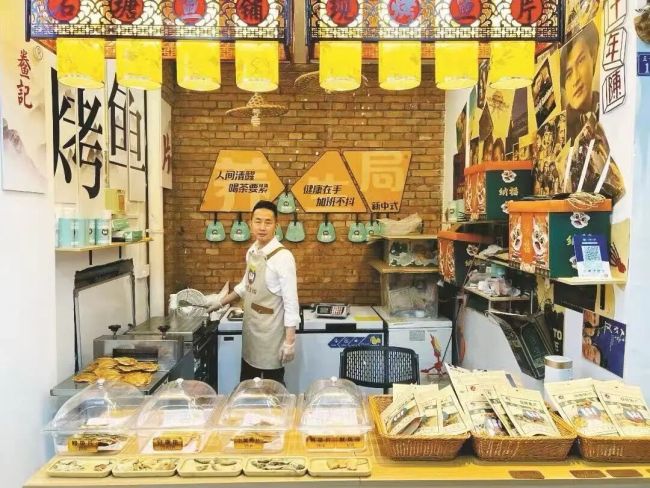 陈清军来自台州温岭石塘镇,是一名常年奔波于浙江各地市集、年货节的现烤鱼片摊主,大家亲切地称他为“鱼片哥”。他在外摆摊四年多,特别喜欢绍兴的烟火气和市民的热情。每次来绍兴赶庙会,现场总是人山人海,热闹非凡。两届庙会期间,他的摊位前始终排着长队。每天早上9点他就到摊位,10点开张后几乎没有停歇过,连喝水的时间都很少。即便下雨天,顾客们也撑着伞排队购买,直到雨势变大才离开。本届庙会四天内,他的营业额达到了6万元,居全场前五。上一届庙会同样如此,不少顾客宁愿排队两小时也不愿离开,最后他只能送上小礼品,大家才不甘心地散去。