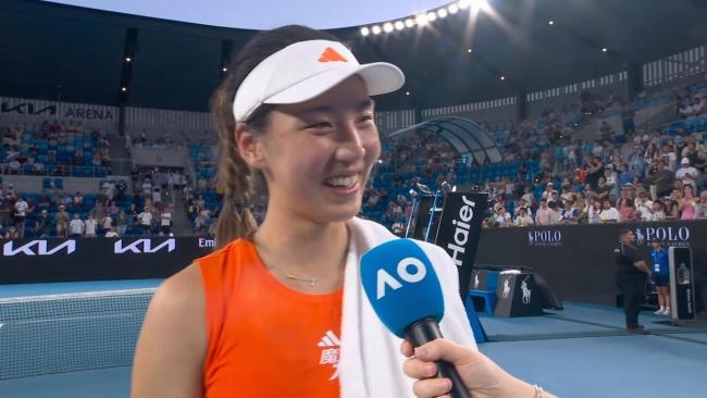 她表示,打进澳网第四轮的感觉非常不可思议。尽管比赛在澳大利亚进行,但她感受到了来自观众的极大支持,并用中文向看台上的中国观众表达了感谢。