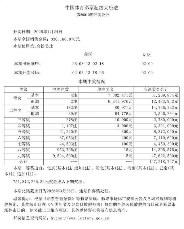 1404万超级大乐透大奖降临昆明,云南再次成为彩票中奖的焦点。本期开奖中,云南获得基本1注、追加1注一等奖,与北京、河北和河南共同分享这份幸运。全国销量达33亿多元,奖池累积至7.51亿元,无数人对美好生活充满期待。云南接连诞生的大奖也引发人们好奇,这份“好运”背后是否隐藏着特别的秘诀?