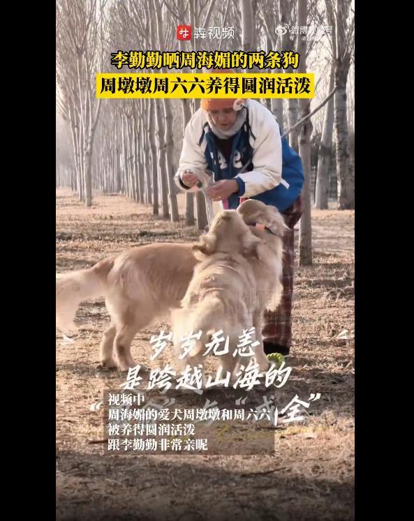 1月28日,演员李勤勤在社交媒体上分享了她收养的两条金毛犬的近况。这两条金毛曾是已故演员周海媚的爱犬,分别叫周墩墩和周六六。李勤勤配文写道:“三载相伴,以爱赴诺,一日三餐,却是跨越山海的思念与成全。”