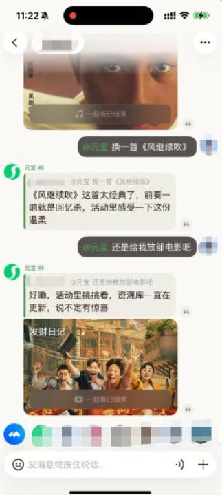 网络上曝光的一组截图展示了元宝派公测版的新功能,包括一起听音乐和一起看视频等。这些功能似乎已经与QQ音乐和腾讯视频的内容库打通,允许用户直接在元宝派中收听QQ音乐会员歌曲和观看腾讯视频会员电影。这标志着腾讯在AI社交领域的一次重要尝试。