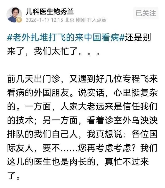 最近在TikTok上,28岁英国女孩凯拉的一张北京某三甲医院的收费单火了。这个视频引发了一股早已暗流涌动的“跨国就医潮”。在小红书上,搜索“医疗旅游 中国”,能看到无数条去中国看病的图文攻略。TikTok也是一片火热,在“Medical Tourism(医疗旅游)”的标签下,大批外国人准备到中国看病。随着大批外国人来华就诊,部分医院自然很开心,但也有顶级医院的专家表示压力很大。