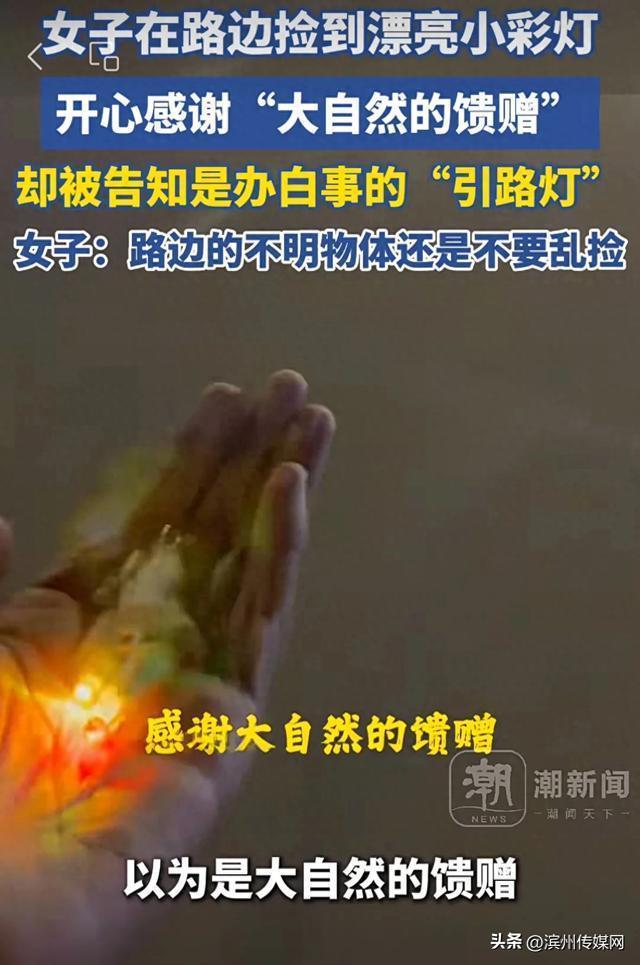 女子误捡逝者引路灯得知后赶紧放回 陌生城市谨慎拾物!2月2日,一名女子在内蒙古旅游时,看到路边有许多漂亮的小彩灯,误以为是大自然的馈赠,开心地捡了许多。后来,一位好心的路人提醒她,这些小彩灯其实是丧仪用的“引路灯”。得知真相后,女子赶紧将捡到的灯放回原处,并感慨在陌生城市里不能随便捡东西。