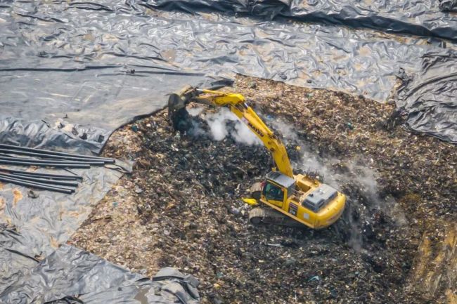 在广州,一座2012年因提前填满而封场的市级最大生活垃圾填埋场——兴丰填埋场,在十多年后被重新启用。巨型货车排队开往垃圾山,覆盖山体的黑色地膜被掀开,露出陈腐垃圾灰黑斑驳的部分。推土机将陈年垃圾运上货车,送往广州几大垃圾热力发电厂进行焚烧发电。项目招标书显示,兴丰填埋场预计开挖存量垃圾总量约296.87万立方米,投资估算约12亿元。未来,这一填埋场将腾出容量,解决垃圾焚烧厂飞灰填埋的问题。
