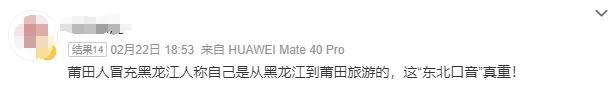 2月21日,莆田广播电视台发布了一条视频《黑龙江游客吴正中:莆田让我感到很温馨》,介绍吴先生是专程从黑龙江到莆田过年的游客。但网友注意到,吴先生的口音带有明显的福建方言特征,因此对他的“东北人”身份表示怀疑。