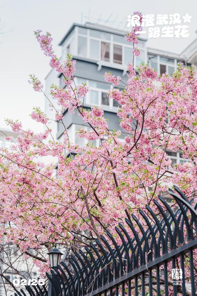 武汉大学的樱花开始绽放,东湖樱花园的几株早樱已经盛放,预计近期就要正式开园。珞珈山庄的早樱虽然数量不多,但花开得十分壮观,粉色花朵缀满枝头,如云如霞。大家最期待的粉白色中樱品种预计3月将迎来盛花期,樱花大道的绝美时刻还需等待。解放公园樱花坡的4株早樱在春节期间就已盛开,现在已长出稀稀疏疏的嫩叶,预计能赏到本周末。低矮的枝条随着湖风抖落花瓣,适合从低角度拍人像打卡。