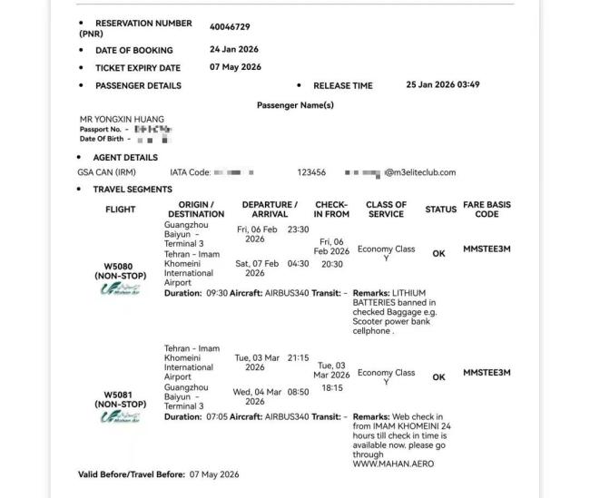 2月6日,27岁的黄勇鑫抵达伊朗德黑兰的伊玛目·霍梅尼国际机场,随后前往伊拉克完成工作,计划于3月3日从德黑兰返回广州。然而,2月28日,黄勇鑫突然失联。远在广州的同事曾传斌看到新闻报道,得知美以向伊朗发动了袭击。