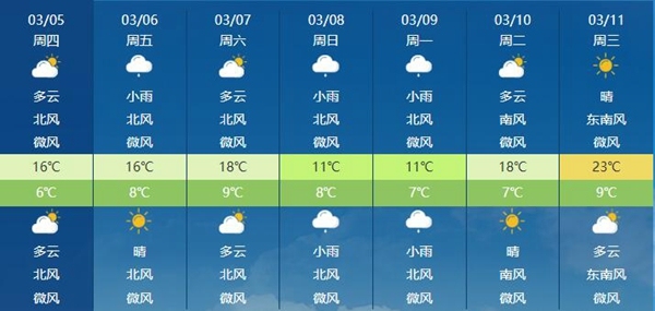 周末前后,我国大部地区将开启回暖模式,北方多地较常年明显偏暖。不过进入3月中旬后,11日至14日还会有冷空气自西向东影响北方地区,西北地区等地会出现大风降温,需注意关注天气变化,及时增减衣物,谨防感冒。