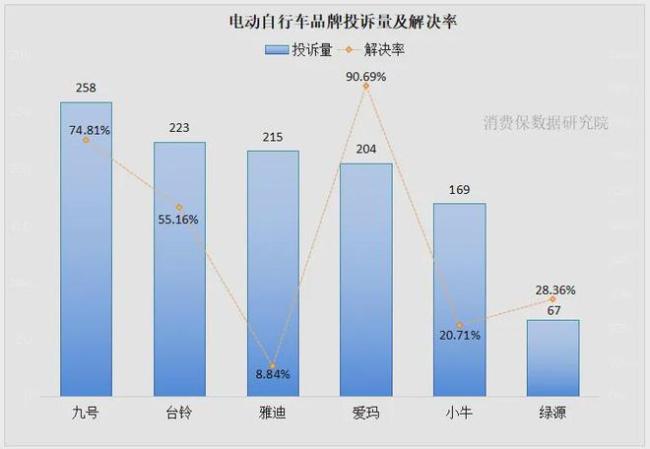 消费保平台发布的《电动自行车投诉分析报告》显示,2025年1月至10月,共受理电动自行车相关投诉1410件,累计涉诉金额386.94万元,有效投诉解决率为42.77%。近六成投诉用户为男性,北广深用户领跑投诉榜。九号以258件投诉量位居榜首,解决率达74.81%;台铃和雅迪紧随其后,分别有223件和215件投诉,其中台铃解决率高于行业平均水平,而雅迪则低于行业平均。爱玛以204件投诉量跻身前列,但高解决率表明其重视用户诉求并及时反馈。