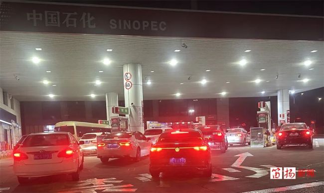 加油站工作人员提醒车主自觉遵守交通秩序、文明排队;如当晚排队时间较长,可选择3月9日24时前错峰加油,仍可享受调价前价格。
