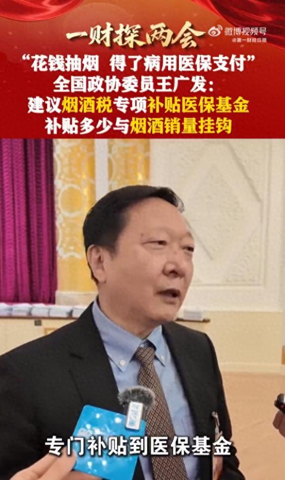 建议将部分烟酒税专项补贴医保基金 专家提议健康责任挂钩!3月10日,全国政协委员、北京大学第一医院呼吸与危重症医学科教授王广发在接受采访时表示,烟酒对健康危害较大,建议拿出部分烟酒税专项补贴医保基金,补贴金额应与烟酒销量挂钩。