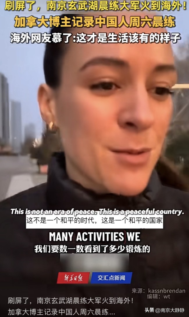 加拿大博主记录中国人晨练被海外网友羡慕 活力满满的城市生活。近日,一段加拿大博主记录南京玄武湖晨练大军的视频引起了国外网友的广泛关注。视频展示了清晨六点多的玄武湖,人们进行各种运动,如晨跑、玩双杠、打篮球、羽毛球、乒乓球,还有滑轮滑和皮划艇。这些活动让整个城市显得充满活力。网友们纷纷点赞南京的城市氛围,感叹这才是生活应有的样子。