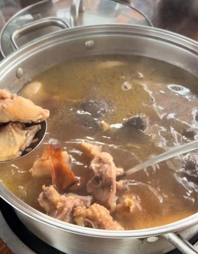 住在附近的华女士特意赶早去打卡,结果十一点多就开始排长队。六斤多的鸡加上汤底,花了二百八十多元。她表示这价格在顺德很正常,而且店里确实有活鸡圈养。