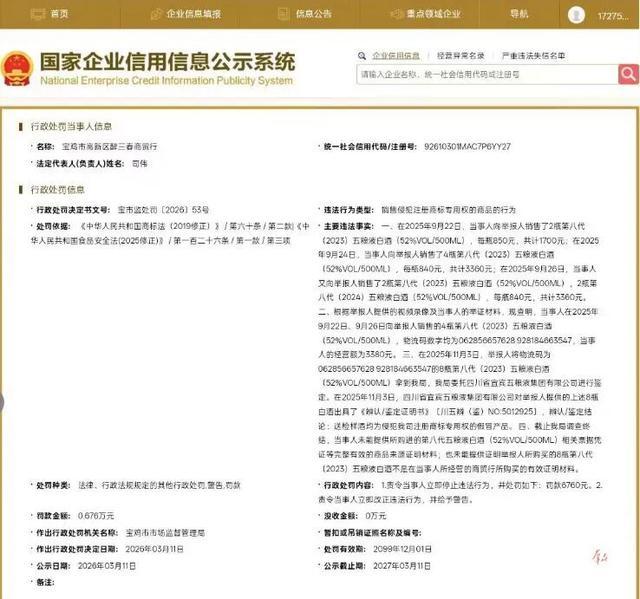 根据国家企业信用信息公示系统的信息,今年3月11日,宝鸡市市场监督管理局依据相关法律法规对商家作出罚款6760元的行政处罚。公开信息显示,该商家违法行为类型为销售侵犯注册商标专用权的商品。栏目组将持续关注李女士遇到的问题。