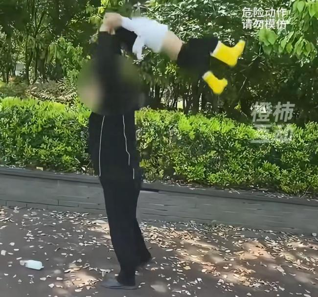4月26日,江苏网友发布了一段视频,视频中一名男子拽着两个孩子的胳膊,在公园里疯狂转圈,看得人心惊胆战。一个男孩和一个女孩仅被拽着一只胳膊,腾空飞起转圈,旁边有人在喊“当心”“放下来”,疑似被拽着的女童也在大喊“好了,好了”。还有画面显示,男孩后来被单独拽着,从前方甩到后背,男子还拽着男孩的一只手,绕着圈甩。